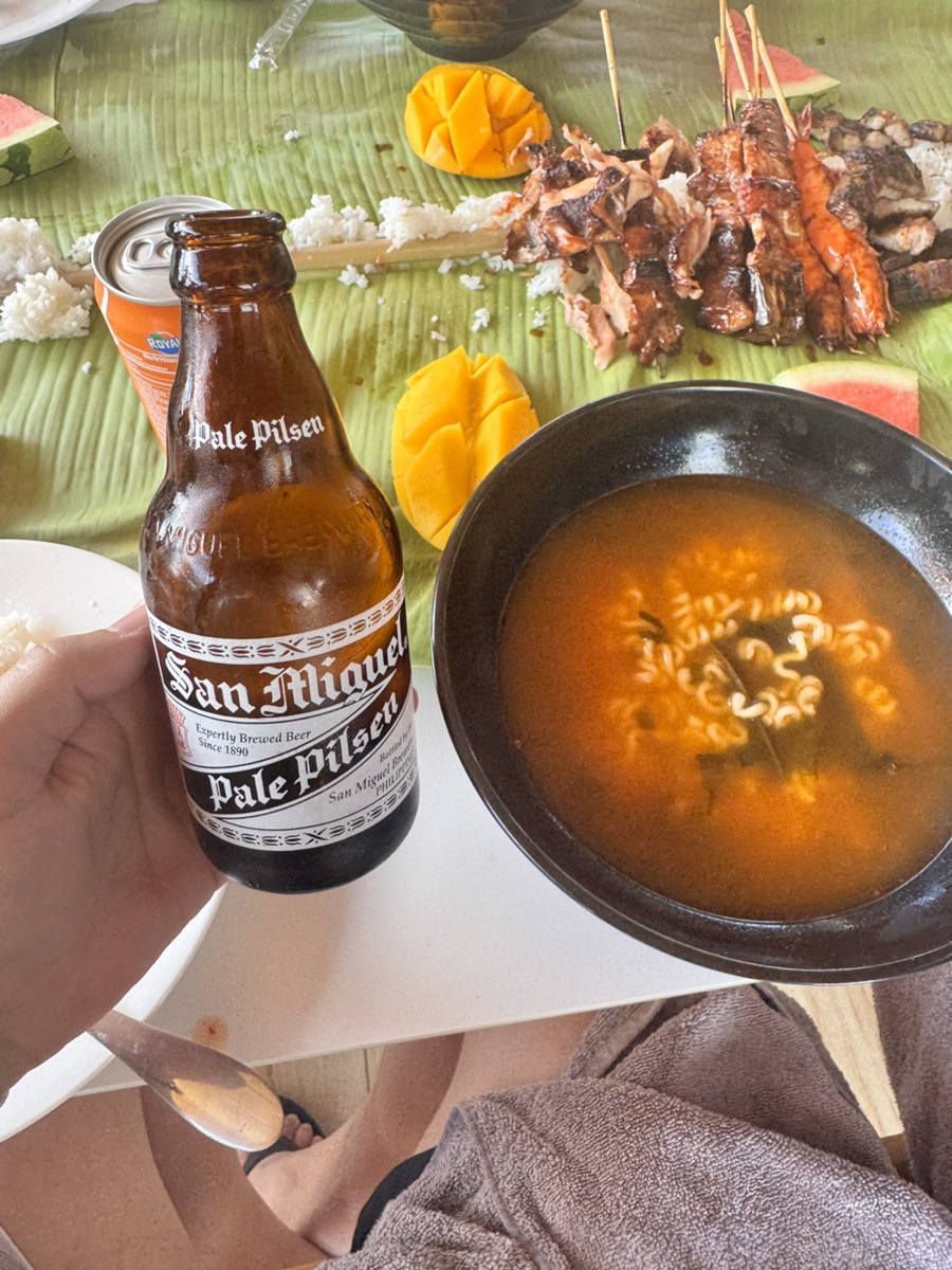 [점심은 바베큐로 라면이랑 맥주도 줘요]
