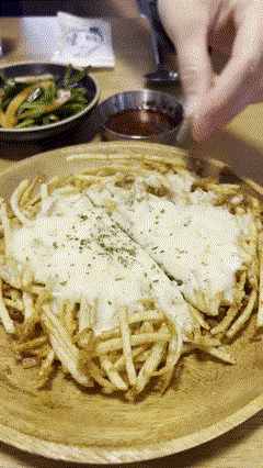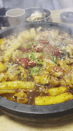 저희는 순살 돌판 닭볶음탕 4인, 치즈 감자 채전 시켰고요