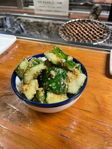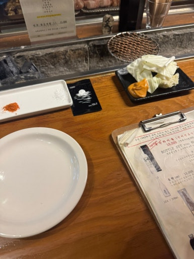 테이블에 앉으면 양배추가 기본 안주로 나오는데